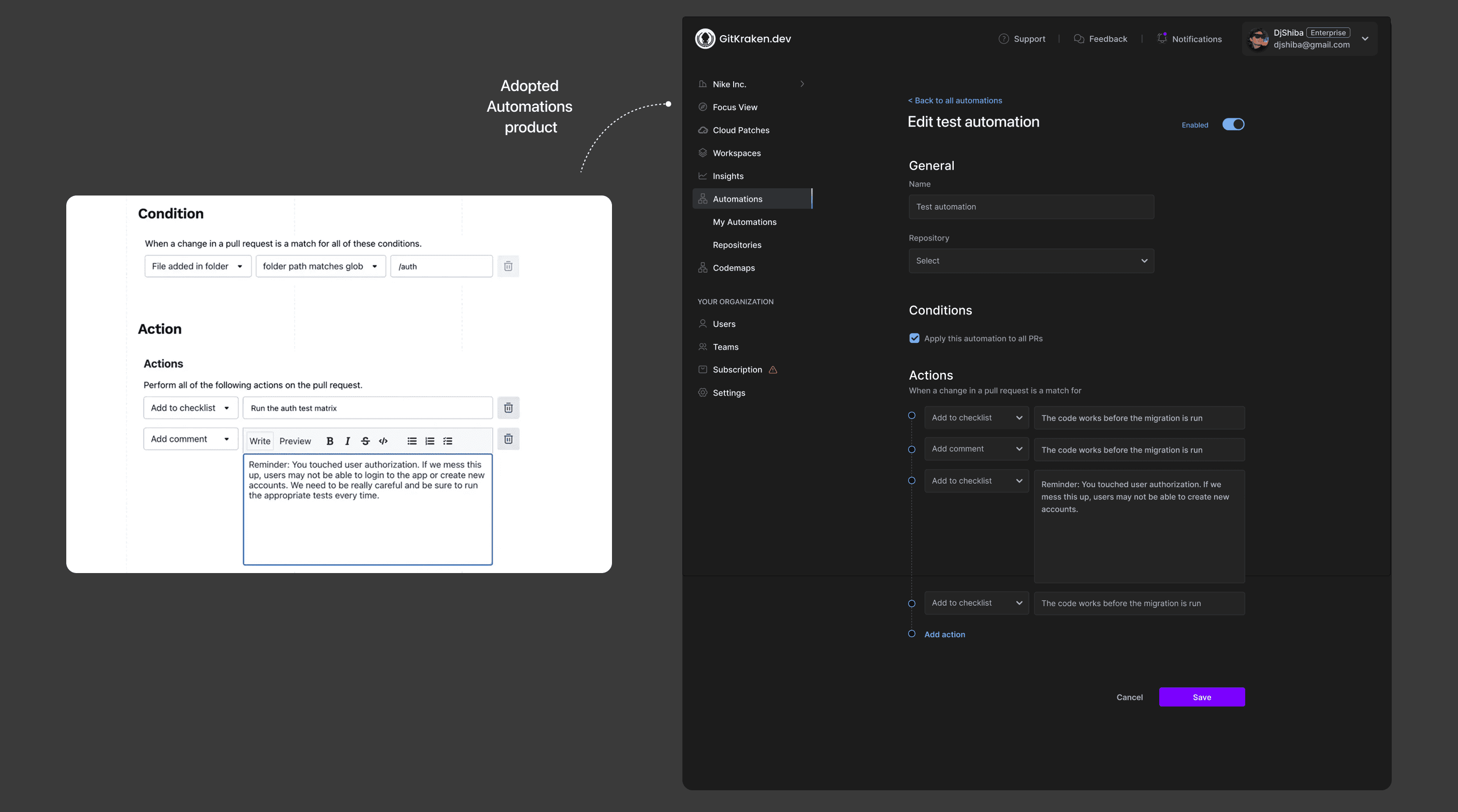 At first we integrated the automations flow of the acquired product CodeSee by adopting it to our design system and guidelines. It was first opened for all users but then it was gated to only paid subscriptions.